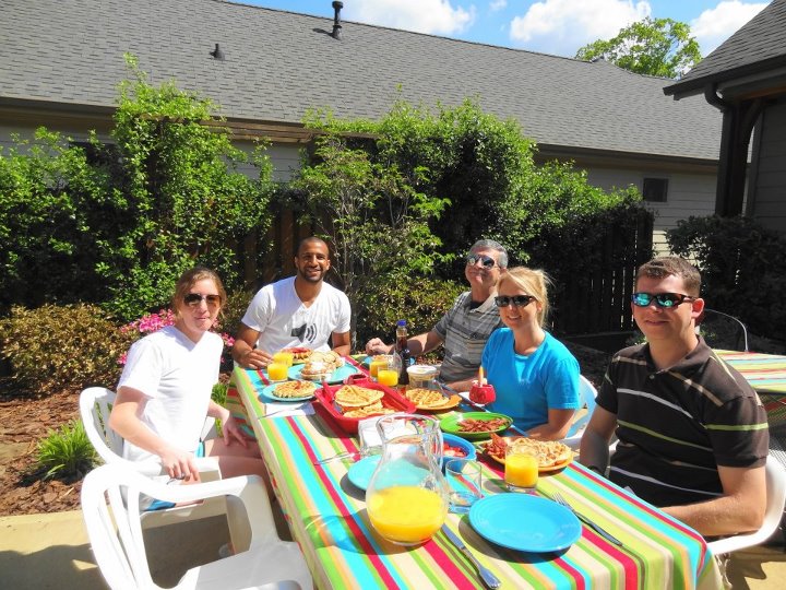 For Easter we traveled to Peachtree City to spend the weekend with the Arnold’s. We had a great time eating delicious food and decorating for the party prior to the Andrew’s ladies coming over! The decorations this year were top notch as we got very creative and made flower arrangements with tulips and candy! The Egg game and appetizer contest were fun as they always are! We ended the trip with a delicious brunch in the courtyard!