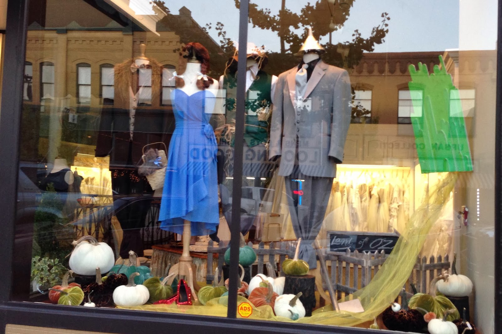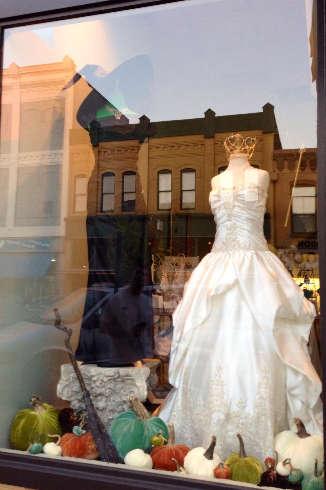 Last weekend I mentioned we went to Columbus, Mississippi to have dinner after visiting the pumpkin patch. We parked right in front of The Bride and Groom bridal shop and they had one of the coolest window displays I have seen in a while. I think this display is so very creative of showcasing their product and is whimsical for passersby to enjoy as they take a stroll down 5th Street.