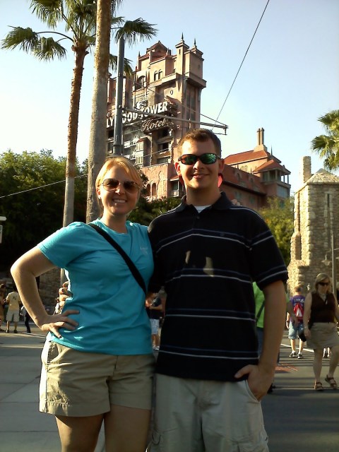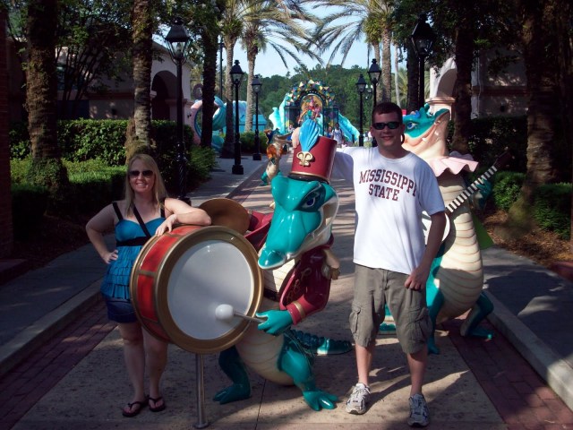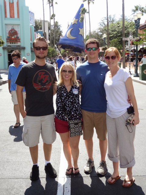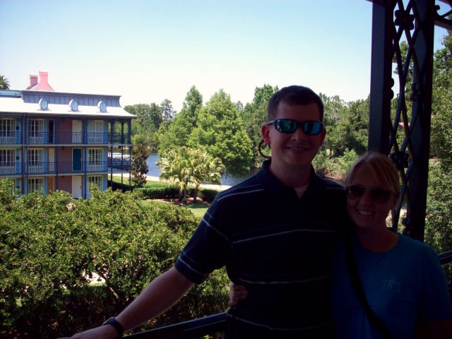 I have been meaning to do this the past couple of days but I have been recovering from one of the most fun/tiring vacations that I have been on in a long time! This will be a long post as I have a lot of photos to show! To start our journey we woke up at 3:30 AM to get ready and leave for the airport which is 2 hours away. After the drive and a minor freak out(by me) we finally arrived and boarded the tiny plane(I hate walking out on the tarmac to board). Both flights were smooth and we arrived in Orlando around lunch! Tyler picked us up and our whirlwind weekend began.We went to our resort which I highly recommend! Port Orleans French Quarter is the smallest of the Disney resorts so even though it was booked it wasn’t even crowded and the grounds were so pretty and well kept. Our room was near the river and the entire resort had just been renovated. Next we went to meet up with Laura who had picked up our tickets the week before and she even let us into the park for the day which was a surprise. So promptly we decided to cancel our dinner reservations and go play in the park for the rest of the day!! We headed to Hollywood Studios(MGM) and of course rode some favorites like Rockin’ Rollecoaster and Tower of Terror and we ate at Pizza Planet! After the park closed we headed back to the resort for some pool time in the awesome Mardi Gras themed pool. Mike’s friend Scott came to hang out and we had a great time! It was an extremely long day but I didn’t even feel tired!